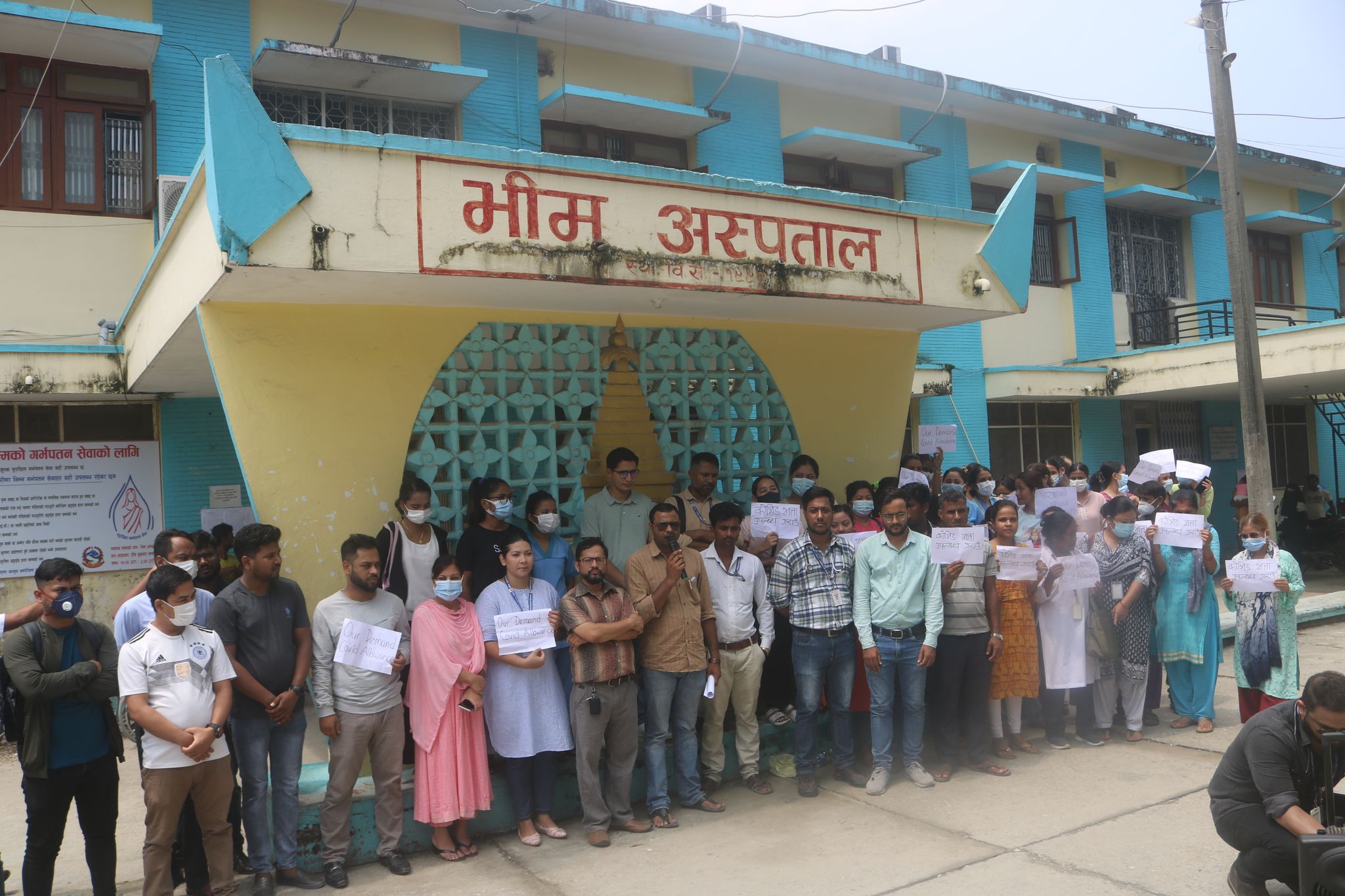 कोरोना जोखिम भत्ताको माग गर्दै भीम अस्पतालका स्वास्थ्यकर्मी आन्दोलनमा