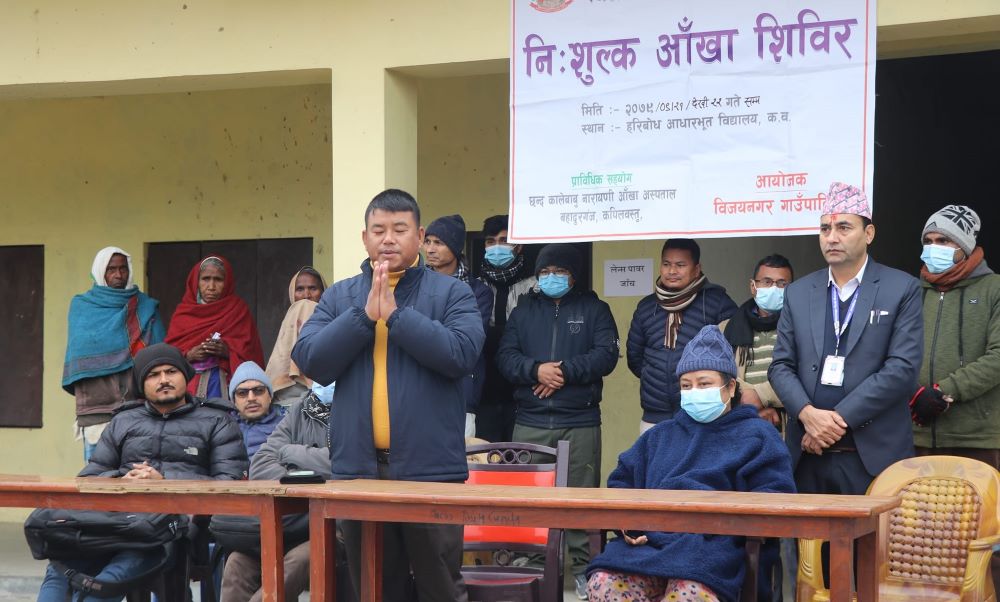 कपिलवस्तु, पुस २२ गते । कपिलवस्तुको विजयनगर गाउँपालिकाले निःशुल्क आँखा उपचार शिविर सञ्चालन गरेको छ । गाउँपालिकाका ग्रामीण भेगका जनतालाई उपचारको दायरामा ल्याउन शिविर सुरु गरिएको गाउँपालिका अध्यक्ष गोपालबहादुर थापाले बताउनुभयो ।