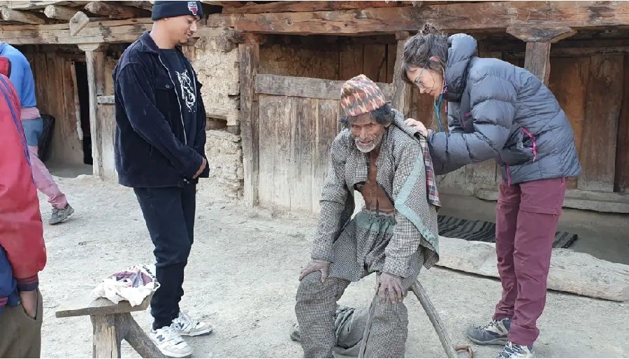हुम्ला, जेठ १० गते । सिमकोट र खार्पुनाथ गाउँपालिकाका तीन वटा वडाका बस्तीमा पुगेर स्पेनिस चिकित्सक मार्ताले बिरामीको निःशुल्क उपचार गर्नुभएको छ । नेपाल घुम्न आएको बेला हुम्ला पुग्नुभएको मार्ताले दुर्गमका बिरामीलाई गाउँमै पुगेर उपचारमा सहभागिता जनाउनुभएको हो ।