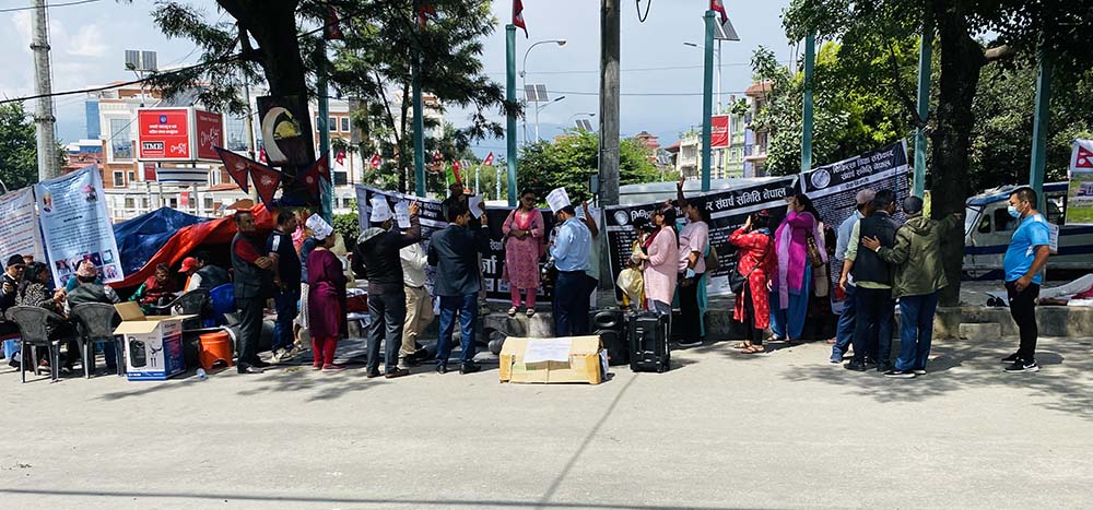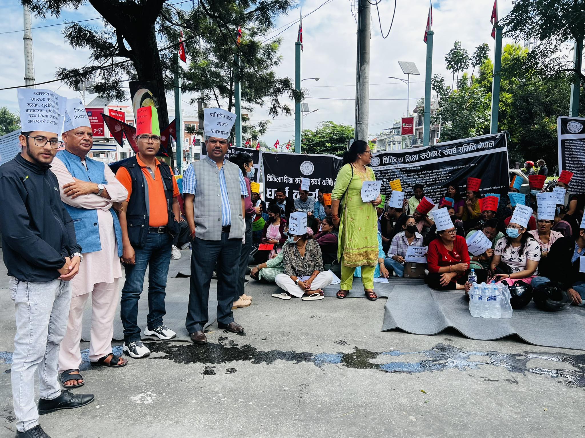काठमाडौं, भदौ १ गते। चिकित्सा शिक्षा ऐन परिमार्जन गरेर चिकित्शा शिक्षामा देखिएको समस्या समाधानको माग गर्दै निजी प्राविधिक शिक्षालय सञ्चालकहरु धर्नामा बसेका छन्।