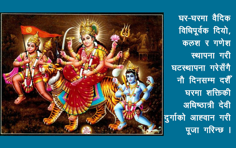 घटस्थापना गरेसँगै नवदूर्गाका ९ वटा रूपहरूको पूजा गर्ने परम्परा छ ।